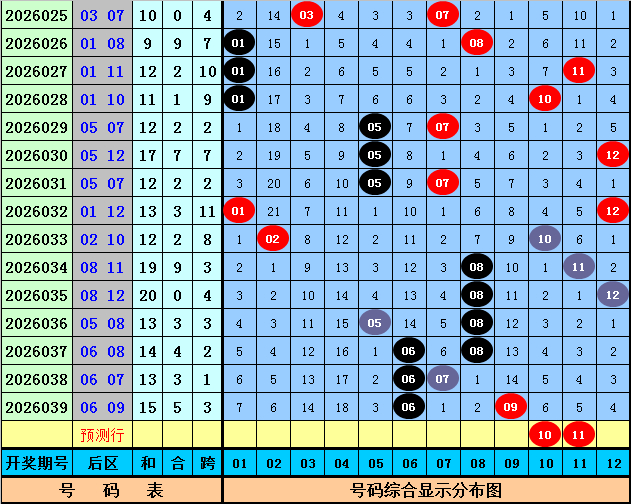 后区分析:上期后区为一奇一偶号码06+09,最近10期后区号码奇偶比为8:12,最近50期后区奇偶比为46:54,本期后区参考一奇一偶组合,关注两码10、11。